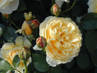 比較的矮性なシュラブで、花の色はやわらかな明るい黄色、多弁なカップ咲きが優美な印象をあたえる美しいバラ。ティーの香り。樹は直立性。秋まで花をつけます。