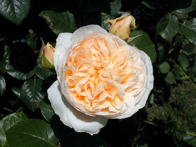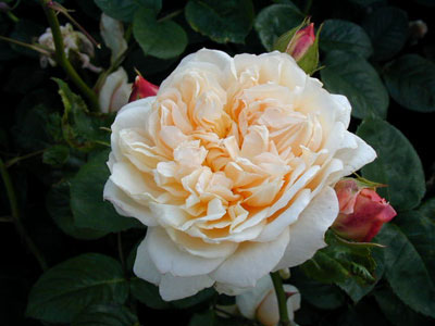 ノアゼットローズの特長を引き継いだバラで、花弁につやがある。枝は良く分枝し密生する。