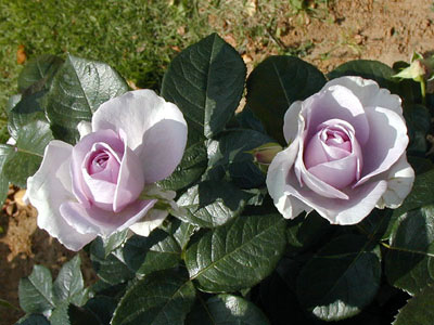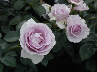 フロリバンダでは数少ない紫系の花のひとつで、とくに青みが強く出ています。一枚に3〜5輪の花がつき、少しうなだれて咲く。形のよい半剣弁咲きで、よい香りがある。