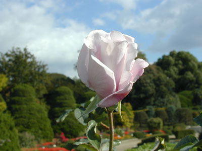 花色はラベンダーのようなうすい紫で、青みはそれほど強くありません。きれいな剣弁高芯で、芳香がある。葉は大きく深緑で、半光沢、株は直立性。
