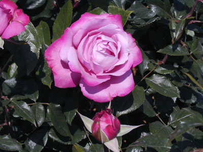 明るいパープルだが花弁の縁にやや濃い赤紫が浮かぶ。強いブルー系独特の香りを持つ。強健。