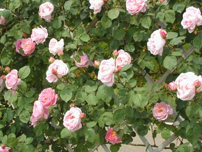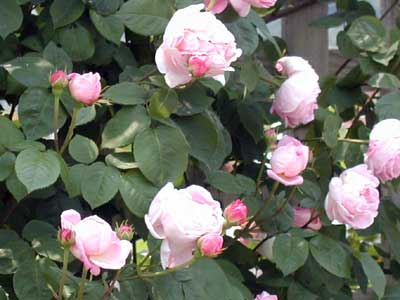 イングリッシュローズの最初の品種。強烈なミルラ香。ふっくらとした花はやや花首を垂れる。株はシュラブだがつるバラとして扱えるほど枝がよく伸びる。一季咲きなのが残念。