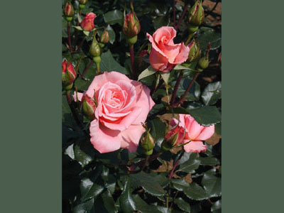 花はアプリコットのかった淡い桃色で、剣弁高芯咲きだが日本では平咲きになることもある。花の数が多く、花つきもよい。またフロリバングにしては香りもよい。強健種。