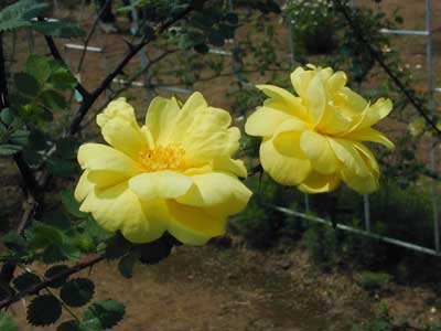 花は明るい鮮やかな黄色で、咲き終わるころは色がうすれる。房咲きにではないが、枝数が多いので株には多くの花が咲く。かすかに香がある。秋になると黒く、くすんだ実がつく。