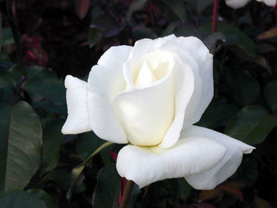 堂々とした花型の美しい白バラ。中心にほんのりピンクを感じる。 AARS賞受賞・1980