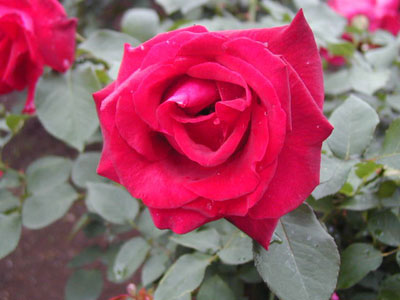 すばらしいビロード光沢のある濃赤色。樹は丈夫。シーズン後半には、ウドンコ病の問題が生じることがある。芳香性。