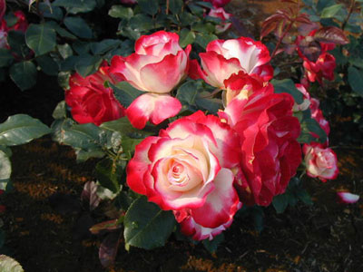 咲き始めはほとんど白の花の弁先が次第に紅く染まり見事。モナコ公国元首レニエ三世大公(グレース・ケリーの夫君)の即位50周年記念。赤と白はモナコ公国の国旗の色。