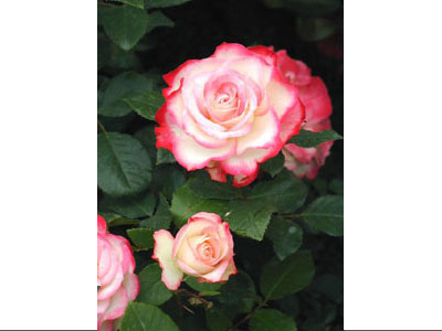 FL/四季咲き/八重/平咲き/ホワイト・レッド/香り1 葉/ブッシュ横張り性/100