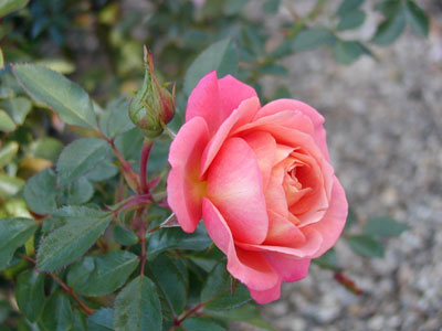 FL/四季咲き/八重/丸弁抱え咲き/コーラル・ピンク/香り1 葉/シュラブ直立性/120
