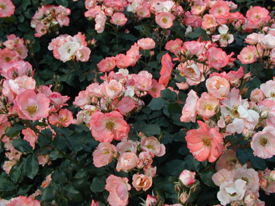 FL/四季咲き/半八重/平咲き(盃状咲き)/コーラル・ピンク/香り1 葉/ブッシュ横張り性/90