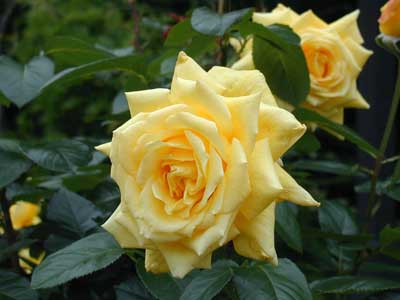 黄色のバラとしては、従来から最高品種の一つ。堂々とした花は、照り葉に良く映え花壇に好適。