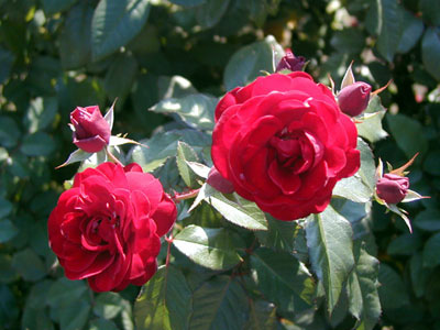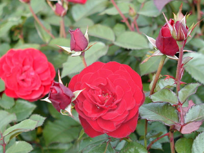 FL/四季咲き/八重/平咲き/ダーク・レッド/香り1 葉/ブッシュ横張り性/90