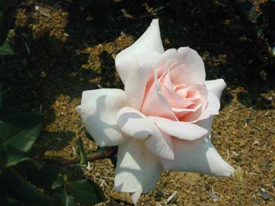 形のよい花は全体に薄めのピンクで、花芯に近い部分にアプリコットがかかる。刺が少なく扱い易い。健康な樹。ティー系の香りをもち、葉には光沢がある。