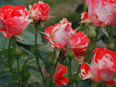 赤に近いオレンジに白の絞りが鮮やかなコントラスト。ステムがしなやかな感じで良く分枝し花つきも良い。
