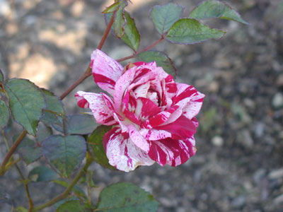 多花性の丈夫な品種で、濃い紫に白の絞り模様が独特。開花時の気温によって紫の出方がかなり異なる。