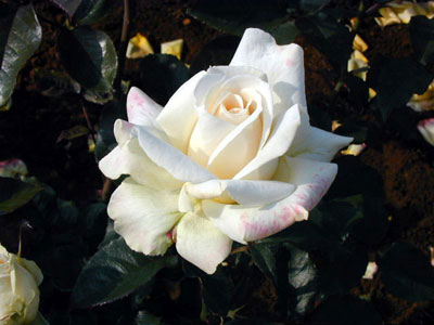 HT/四季咲き/八重/剣弁高芯咲き/ホワイト/香り3/葉/ブッシュ直立性/120