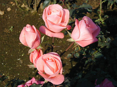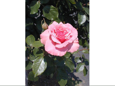 花弁数の多い八重咲きで、やさしいピンクの名花。良葉でブッシュタイプの整った樹形。