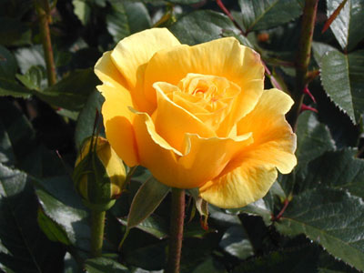 HT/四季咲き/八重/半剣弁高芯咲き/イエロー/香り1 葉 濃緑色、照り葉/ブッシュ直立性/120
