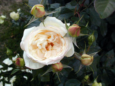 オールドローズを思わせる、アンティークな花が咲く品種。花つきがよく房咲きになる。シュートは半つる性だが、冬の強剪定でブッシュのように扱える。