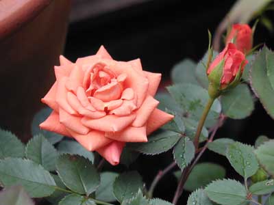 咲き始めは小さいながらも美しい剣弁高芯の花型でテラッコタのような、変わった茶色。開くにつれ色が薄くなりながら紫味が強くなり小倉色になる。茎が紫で葉色も落ち着いた緑で美しい。同一品種のつる性のものもある。