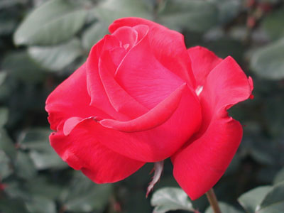赤味の勝ったローズレッドで独特の色合い。暑さ寒さに強く春から晩秋まで絶え間なく花が咲く。強健。