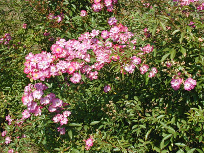 低性のブッシュタイプのシュラブ。優雅にしなる枝に小輸で半八重咲きの花がスプレー咲きする。花色はローズレッドからラベンダーピンク、おしべの黄色がアクセントをつくる。わずかに香りがある。数株をまとめて植えると、見応えがある。かつてはポリアンサに分類されていた。