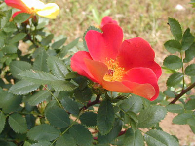 花弁の表はカッパー(銅)の名の通り橙色ですが、裏は鮮やかな黄色という、珍しい複色。オーストリアン・イエローの枝変わりで、性質はほぼ同じ。鉢植えに向く。