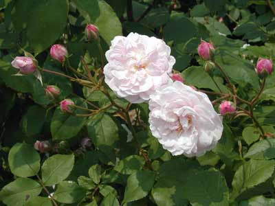 ノワゼットが作出した最初のバラで、白に近い淡いピンクの花は丁子(クローブ)のような香り。花付がよく大きな房にまとまったときの美しさは格別。シュフブとつるバラのどちらとしても扱え、優しい樹形の魅惑的なノワゼットローズ。