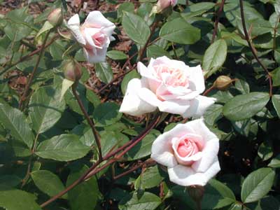 別名「マルチーズ・ローズ」。チャイナローズの系統で四季咲き性。ソフトピンクの花はミニチュアのようだが、剣弁高芯のきれいな花型、ただし咲き進むと平咲き。樹は低性のブッシュタイプで細枝の紫が美しい。