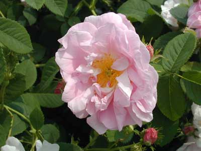 半八重咲きでピンクの花が房咲きになる。香りも魅惑的。