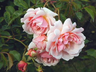 ムスクローズの中でも特に強健な品種で、使いやすいシュラブ。シルバーピンクからサーモンピンクの柔らかな花色と優しげな花びらが上品な華やかさを振りまく。