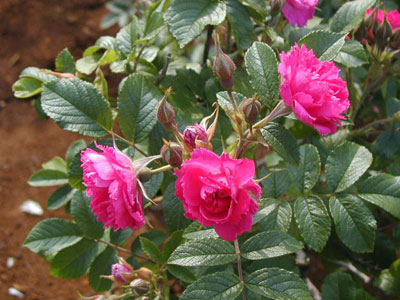 Rg/一季咲き/八重/ロゼット咲き/ショッキング・ピンク/香り 葉/ブッシュ/150×90