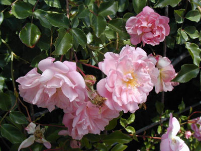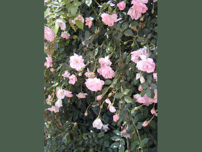 乱れ気味の花弁が面白く、ピンク色の個々の花は、微妙なグラデーション。「アルバーティーン」と似ているが、満開時にはこのバラの方が壮観で。