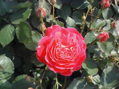 このバラには、強いチャイナローズの特徴があるが分類が難しい。花は房咲きで、深紅色が時とともに深まる。香りは強いスパイシー。
