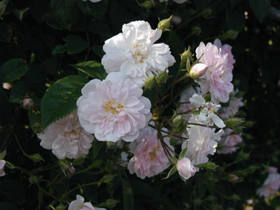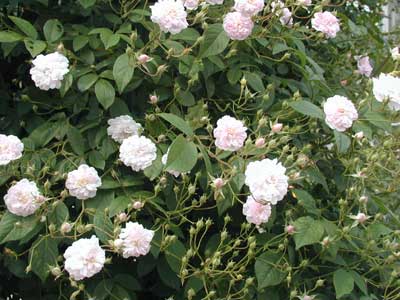 よく伸長するつるに小輪のソフトピンクの花が多数集まって房状に咲く。手入れが楽で、丈夫。比較的遅咲きで6月に入ってから咲く。