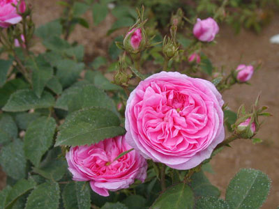 コンパクトな小柄な樹。花径4cm弱の小輪八重咲きの花をたくさん咲かせる。花色は温かみのあるピンクで、中心がやや濃い。原種は不明。
