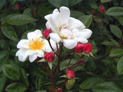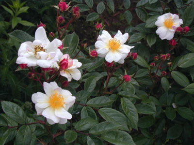 HMsk/返り咲き/半八重/平咲き/ペール・ピンク/香り 葉 濃緑色/ブッシュ横張り性/120