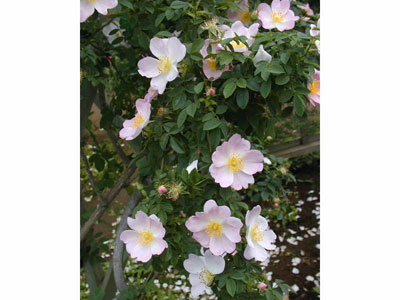 ヨーロッパに自生する野ばら。台木にするほどどこにでも見られるが、満開時には清純な華やかさがある。
