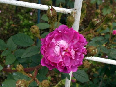 別名「オールド・ヴェルヴェット・モス」。かなり強健なシュラブだが支柱があったほうが良い。蕾にはモスローズ独特のコケで厚く覆われている。実も同様。